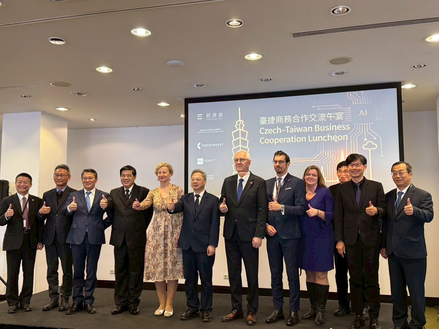 龔部長強調,因應全球重要趨勢,臺灣及捷克可挑選「AI」、「無人機及航太」、「電動車」、「雷射」及「電子顯微鏡」五大領域來進行合作。人工智慧(AI)的興起將帶動AI及半導體供應鏈的發展,臺灣生產AI伺服器的鴻海、廣達及英業達皆在捷克有投資,臺灣與捷克又有許多半導體人才的合作計畫,配合台積電在德國建廠的進程,臺捷將可以持續深化產業合作。歐盟已宣布「AI超級工廠」計畫(AI Gigafactory)補助,臺灣的供應鏈優勢可以協助捷克向歐盟爭取算力中心落地捷克,創造雙贏。