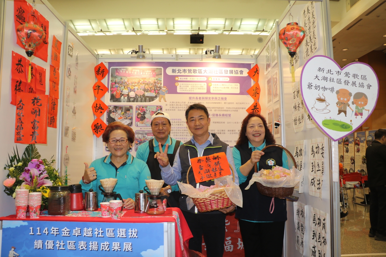 鶯歌區大湖社區在特色展中展出爺奶咖啡和手作鳳梨酥 右2為區長曾明華 圖4