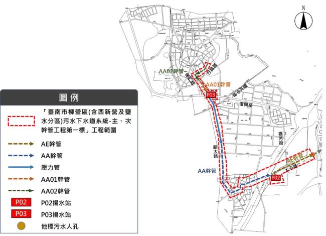 水利局指出,為因應溪北地區觀光發展及水質改善需求,柳營區(含新營、鹽水)污水下水道系統已進入第三期建設階段,且正式啟動鹽水區污水下水道主幹管工程,並委由內政部國土管理署下水道工程分署投入約新臺幣3億元辦理「臺南市柳營區(含西新營及鹽水分區)污水下水道系統─主、次幹管工程第一標」,規劃於太子路、新太路、南門路、行昌路等路段埋設污水管線,工程已於114年11月28日開工,工期750日曆天,預定116年12月完成約5.3公里管線及2座揚水站建設。