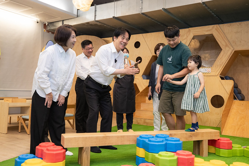 談及中央社福政策,總統以「0-6歲國家一起養」政策為例,說明家長自己帶0到6歲的小朋友,政府每個月給予育兒津貼第一胎5,000元、第二胎6,000元、第三胎7,000元。0到2歲選擇公共化托育,政府補助第一胎每個月7,000元、第二胎8,000元、第三胎9,000元。送托準公共服務的家庭,每月補助第一胎1萬3,000元、第二胎1萬4,000元、第三胎1萬5,000元。至於2到6歲幼兒就學補助,若就讀準公共化幼兒園,家長每月只要負擔3,000元;非營利幼兒園每月負擔2,000元;公立幼兒園每月只需負擔1,000元,其他費用都由政府負擔。政府一年編列 1,100 億至 1,200 億的預算,幫助年輕夫婦,減輕家庭負擔,實現年輕家庭「敢生、敢育、敢養」的目標。
