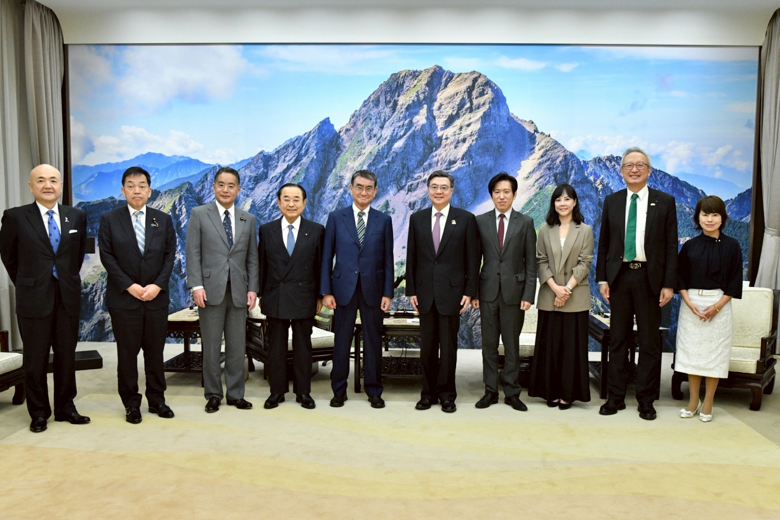 圖4 行政院長卓榮泰接見日本前外務大臣河野太郎眾議員一行貴賓合影 (圖為行政院提供)