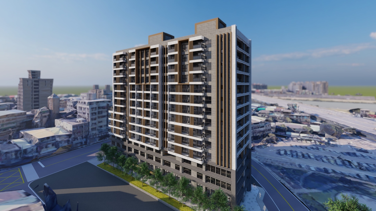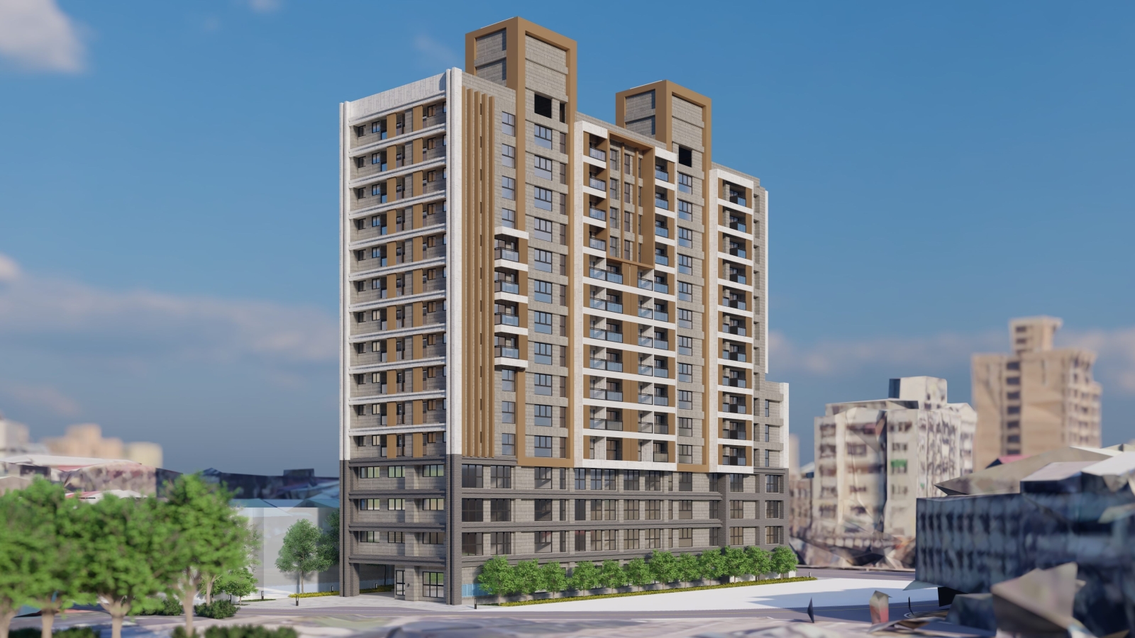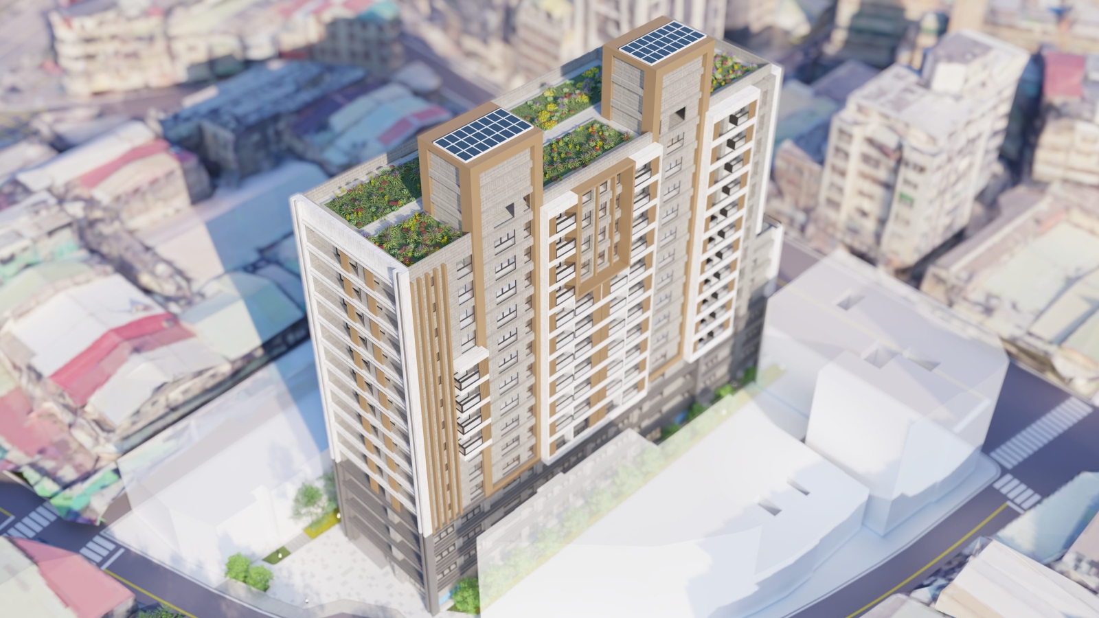 新工處建築工程設計科科長顏俊明表示,警察局原社正路警察宿舍因建物老舊且土地使用效率低,故市府規劃辦理本改建工程。本案基地面積位於社中街以北、社正路以南、延平北路六段以東,屬士林區社子里核心地段,鄰近社子市場、社子夜市、社正公園及社子國小,生活機能完善,基地面積約1,950平方公尺,其工程規模為地下4層、地上15層之鋼筋混凝土建築物。本工程針對採光不足及沿街店面可及性等議題進行設計優化調整,並全面取得耐震設計標章、綠建築銀級、智慧建築銀級、建築能效1+級及無障礙環境第二級等多項認證,兼顧安全、節能、智慧與友善居住品質。