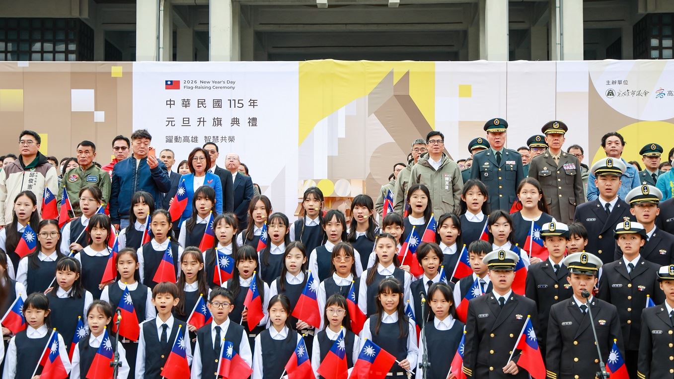 圖1 揮別2025、迎接2026,陳其邁在升旗典禮上,向各界表達感謝,期盼大家持續為高雄的未來發展努力 (圖為市府提供)