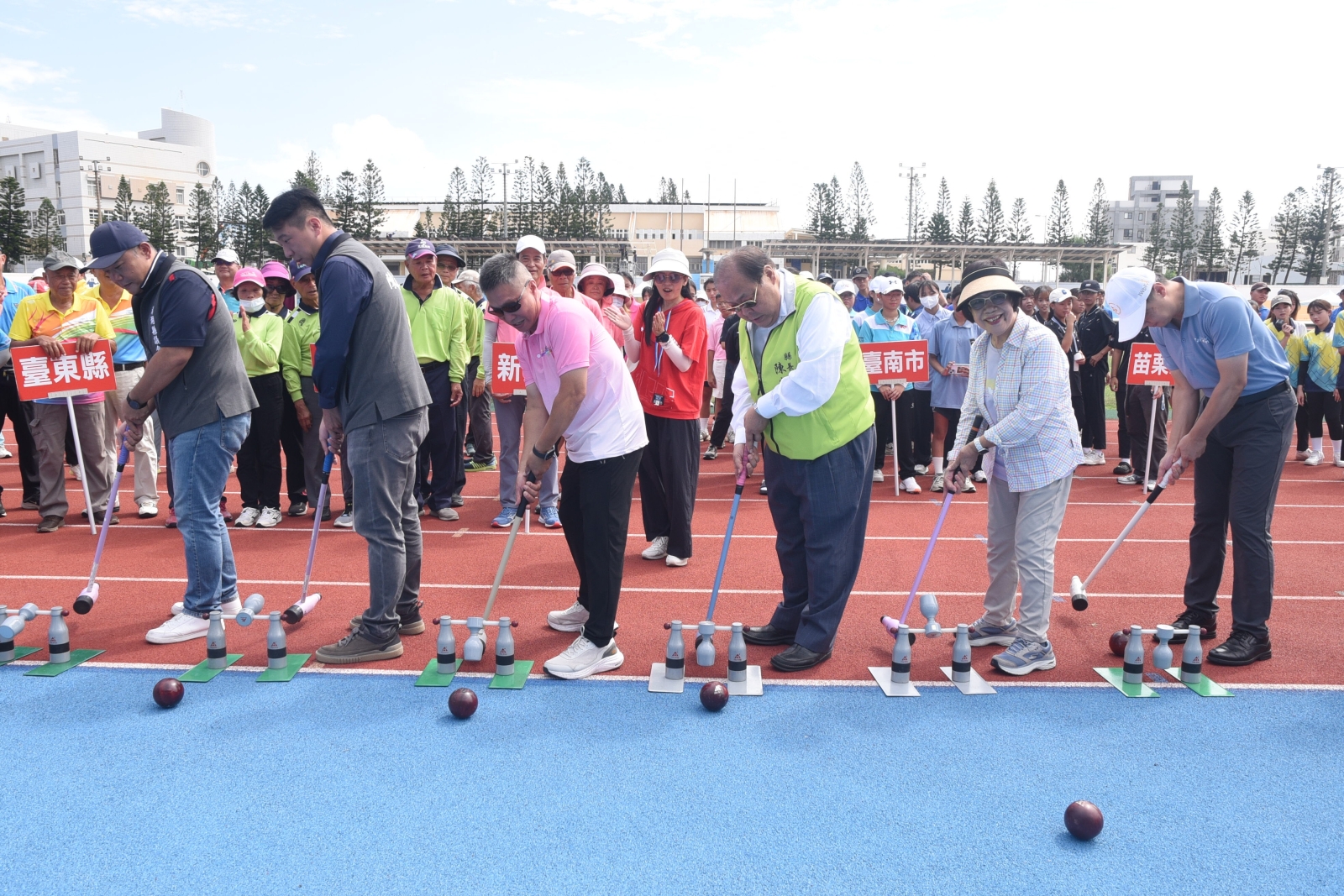 114年全國「中正盃」木球錦標賽4日上午在澎湖縣立田徑場盛大開幕,縣長陳光復到場參與,熱情歡迎來自全國各地的木球菁英齊聚澎湖,以球會友、同場競技,場面熱鬧非凡。