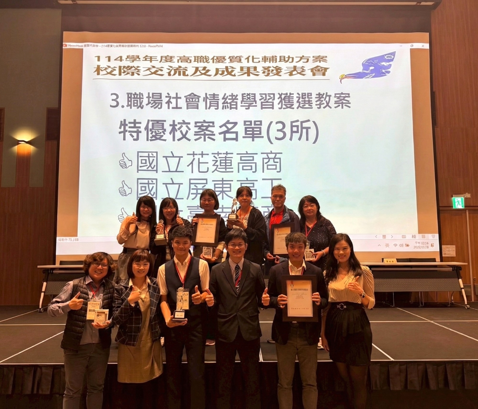 圖3 SEL特優教案獲選學校(花蓮高商、 屏東高工、 臺南高商)團隊合影 (圖為教育部提供)