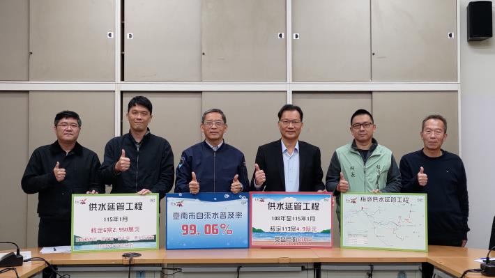 市府為改善無自來水地區用水問題,積極向中央爭取補助經費,115年度經濟部水利署「無自來水地區供水改善計畫」延管工程評比,獲核定施作本市楠西區照興里及灣丘里北勢仔等6案供水延管工程,總工程經費新臺幣 (以下同) 2,950萬元,改善楠西區、南化區、新化區、善化區及安定區等5行政區用水,全部工程預定於115年12月前完工,統計108至今共爭取自來水延管工程經費達4.9億元,施作113案供水延管工程,受益戶數870戶。