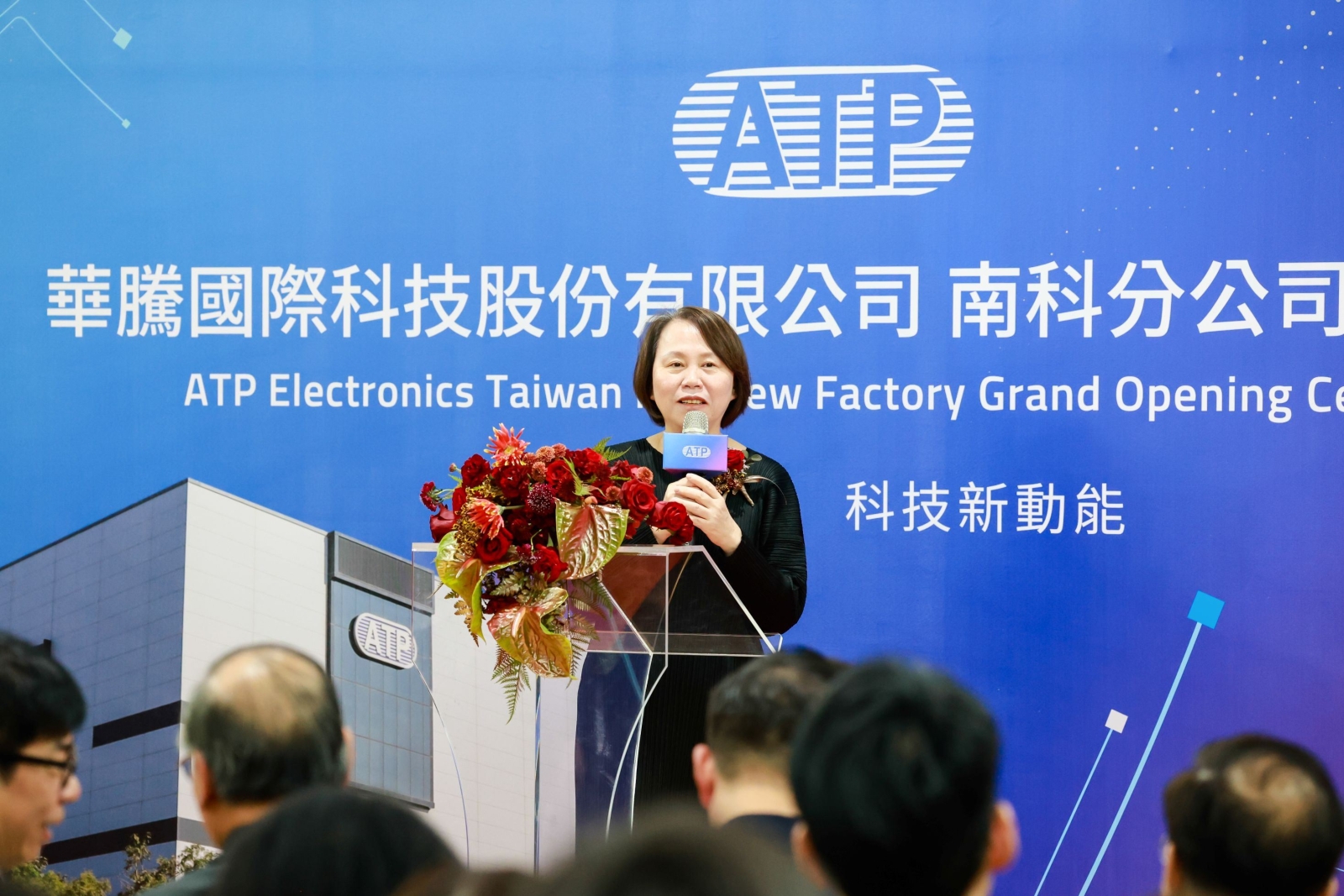 國科會南科管理局長鄭秀絨致詞說明,很榮幸見證華騰國際成為橋頭科學園區首家正式啟用的廠商,首先感謝陳其邁市長於行政院任職時的前瞻規劃。中央為完善園區交通,投入逾百億元經費,雖興建初期曾面臨水電與路燈不足等挑戰,但在中央與市府緊盯進度下已逐一克服,現接駁系統也已順利銜接。感謝謝董事長在園區初期即展現精準眼光、率先進駐,華騰去年營收再創新高,目前訂單已全數滿載,技術實力領先市場。對此,已誠摯邀請華騰在園區剩餘土地規劃二廠並設立研發中心,持續擴大規模,我有信心華騰業績將續創新高!期待橋科在重要里程碑之際,能持續與優質標竿企業攜手深耕,帶動南台灣產業成長。