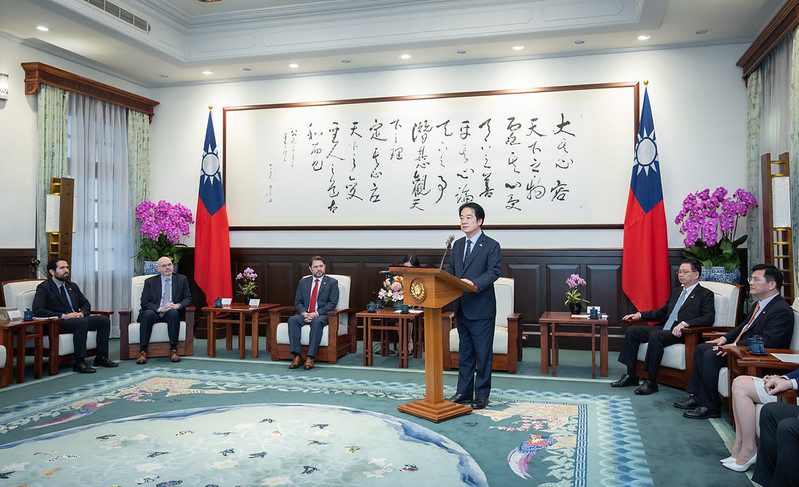 總統致詞時首先代表臺灣人民誠摯歡迎蓋耶哥參議員再次來臺。並提到,蓋耶哥參議員曾在2018年擔任聯邦眾議員時首次造訪臺灣;在就任聯邦參議員後,以新的身分再度來訪,持續展現對臺灣的關心與支持。此外,蓋耶哥參議員在眾議員任內是眾院軍事委員會成員,長期關注國際安全與印太情勢,更多次在「國防授權法案」推動友臺條文,對此深表感謝。