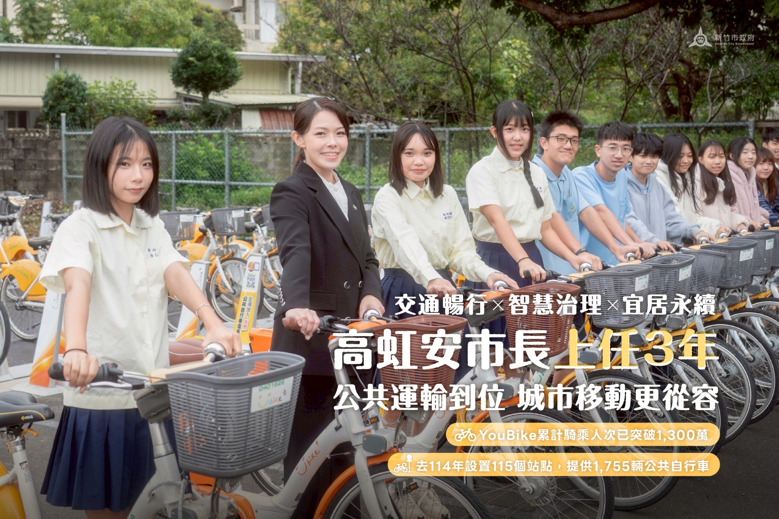 新竹市長高虹安上任滿三週年,新竹市政府秉持「交通暢行、智慧治理、宜居永續」的施政願景,以「便捷、安全、永續」為核心目標,持續推動智慧交通與公共運輸升級,從「桃竹竹苗TPASS通勤定期票」減輕通勤族交通負擔、全電動「先導公車」打造低碳友善運輸環境,到擴大「YouBike與共享機車」服務網絡,全面優化市民通勤選擇,展現市府深化交通建設、回應市民需求的具體成果。