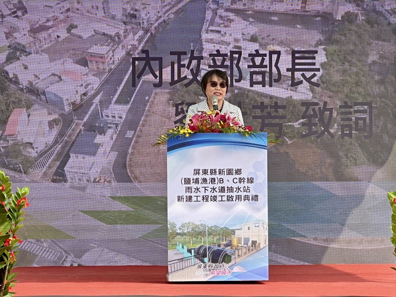 內政部長劉世芳昨(26)日出席屏東縣「新園鄉鹽埔漁港B、C 幹線雨水下水道抽水站新建工程」竣工啟用典禮。劉世芳表示,屏東縣新園鄉鹽埔漁港地區長期飽受淹水之苦,現在終於有了解決方案。中央透過「前瞻基礎建設」計畫,全額補助屏東縣政府4億7,321萬9,000元,完成新建抽水站、防潮設施、護岸及雨水下水道等防洪改善建設,預期可降低在地積淹水風險,提升整體防災韌性,守護逾1.8萬民眾生命財產安全。