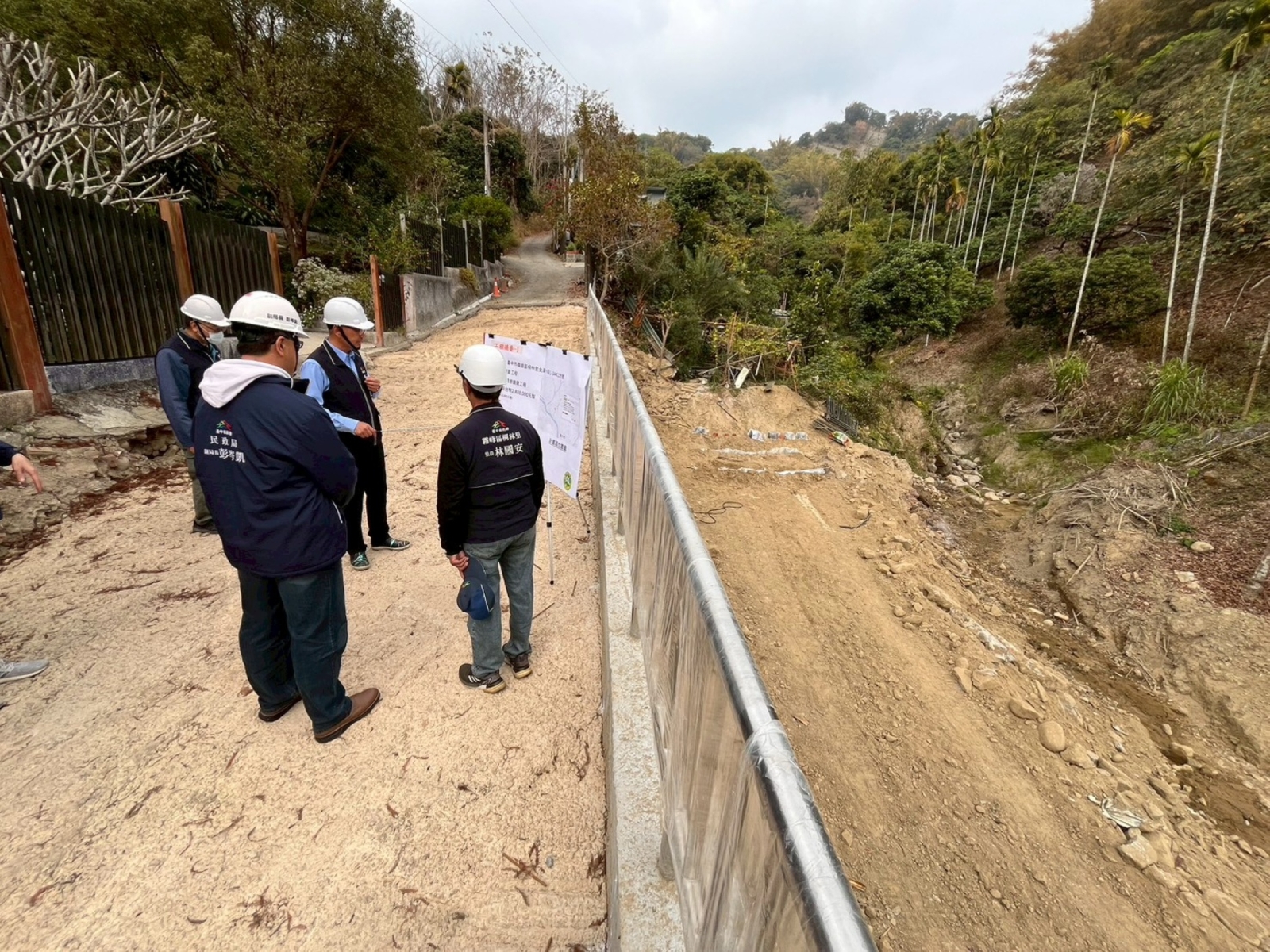 圖4 民政局彭副局長與霧峰區長、坑口里長前往視察峰谷二號旁護岸復建工程 (圖為臺中市政府提供)