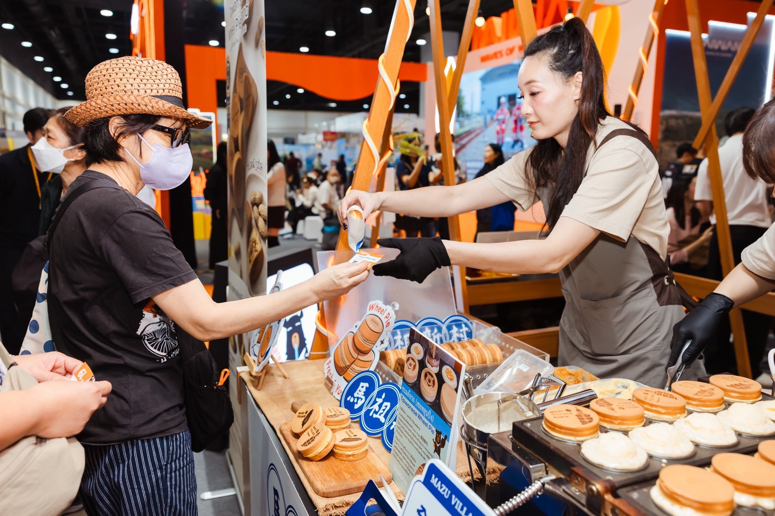 圖1 台灣美食車輪餅香氣四溢吸引泰國民眾駐足嚐鮮 (圖為觀光署提供)