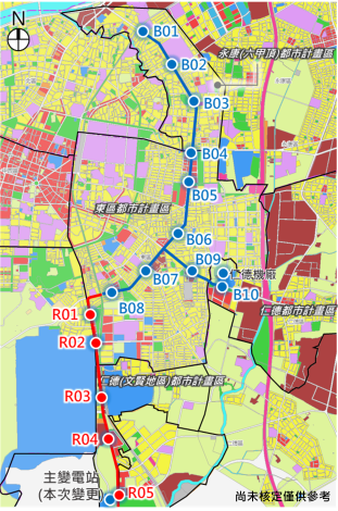 局長王銘德指出,因捷運列車牽引、車站設備都需要電力,本次座談會所討論的用地係規劃為主變電站,該用地(二仁段1084地號土地)位於仁德(文賢地區)都市計畫區內農業區,靠近機場圍牆邊,現為蔗田及瓜田,現規劃變更為捷運系統用地並修正土地管制要點,該地點位置適中,未來設置主變電站可供應藍線所有車站、列車及其他設施所需轉供電力,也可兼顧未來捷運紅線之供電需求。