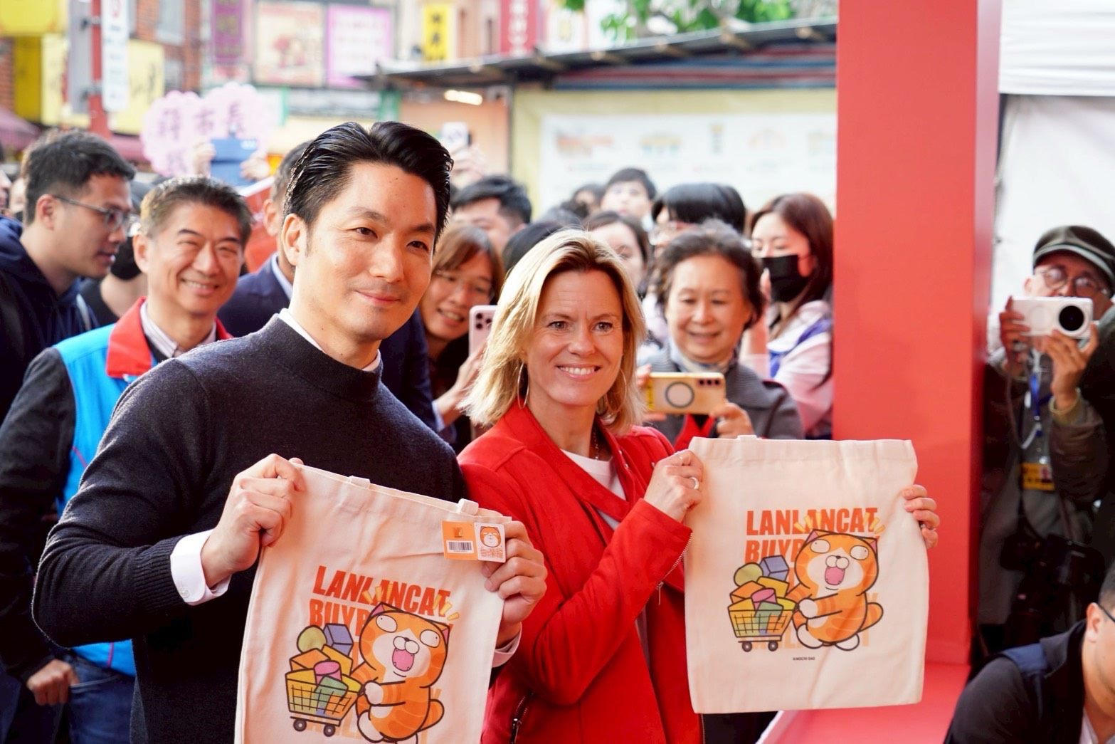 蔣萬安指出,再過兩週即將迎來馬年,而年貨大街正是感受年味最濃郁的地方。他表示,如果過年沒有來迪化街體驗人擠人、試吃零食、聆聽店家叫賣聲,就好像少了點什麼。因此他力邀所有民眾,尤其是國內外旅客,務必親自走訪迪化街。蔣萬安特別提到,包含今天出席的英國代表,以及前不久挑戰攀登臺北101的Alex Honnold及其夫人,他們都親身體驗大稻埕迪化街的風情,證明迪化街就是最棒的城市宣傳,活動最後蔣萬安更與英國在台辦事處代表包瓊郁( Ruth Bradley-Jones)一同吃小吃、套圈圈同樂,包代表更向蔣市長送上英國茶祝大家新年「錢滿袋」。蔣萬安感謝鄭理事長及所有商圈夥伴的努力,共同將這張代表臺北的名片遞送到全世界。
