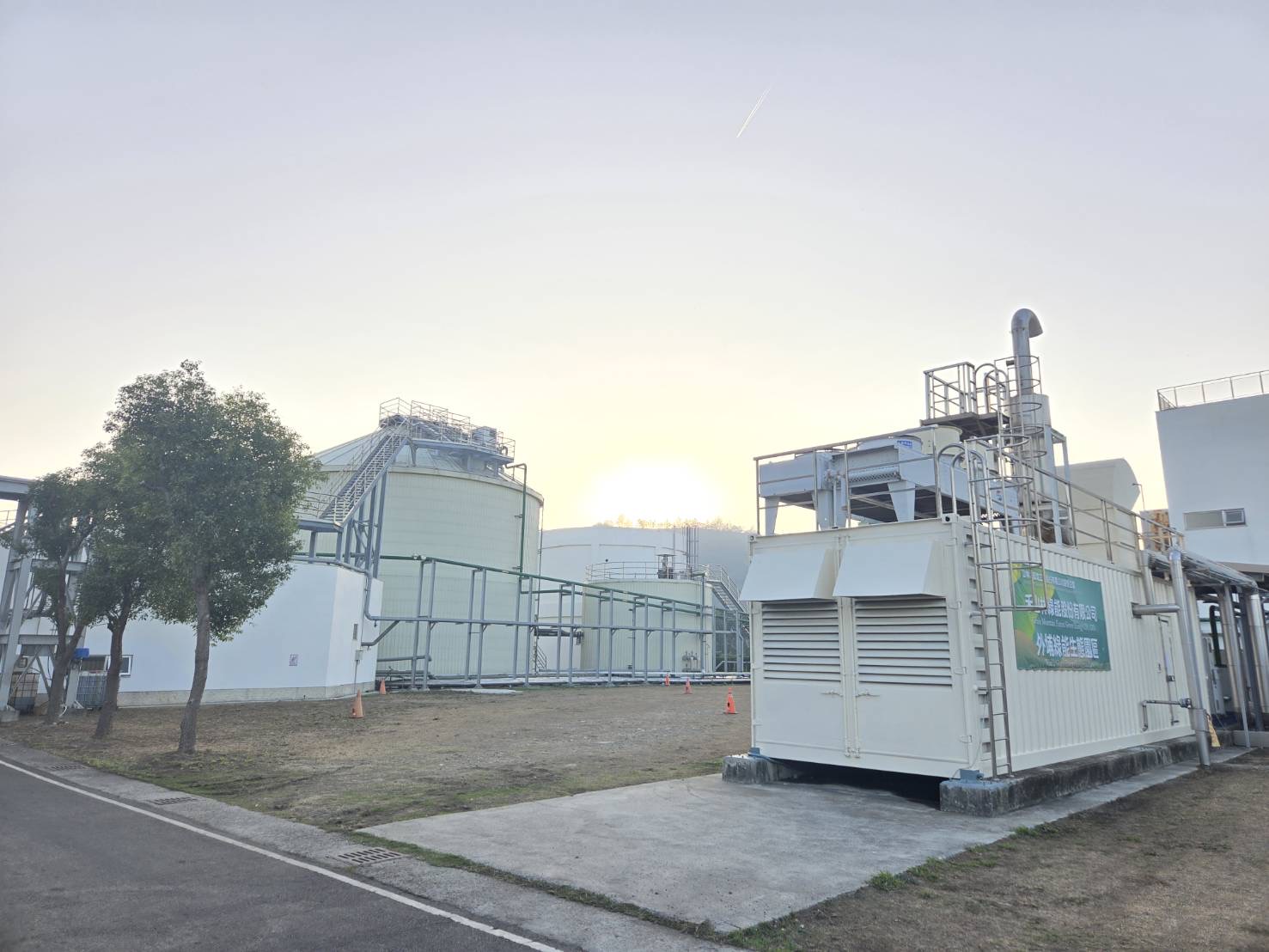 圖1 中市外埔綠能生態園區廚餘厭氧發酵產氣發電系統 (圖為市府提供)