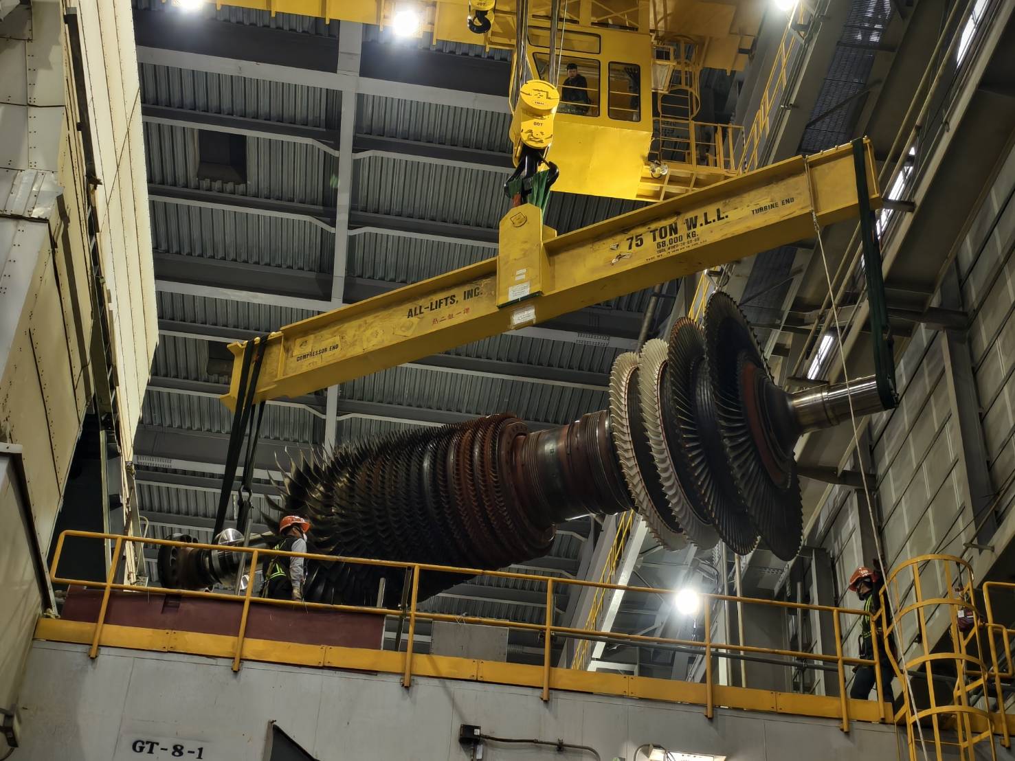 圖1 電力團隊將如「機組心臟」的氣渦輪及汽輪機轉子吊出檢查,完整檢視新機組運轉1年後的組件強韌狀況。(圖為台電公司提供)