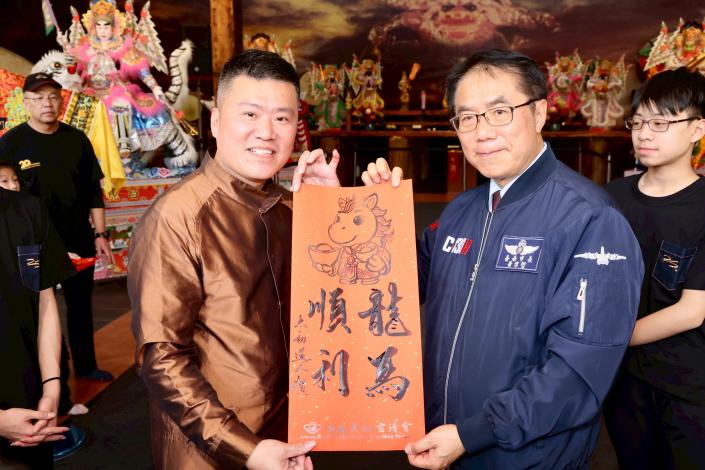 黃偉哲表示,感謝來自世界各地的藝術家齊聚台南,透過創作交流展現多元文化能量。活動不僅呈現藝術展演,也融合民俗與宗教元素,展現深厚人文底蘊。他也特別感謝阿男道長長期投入文化傳承與創作,讓傳統信仰藝術以新的形式走入大眾視野。