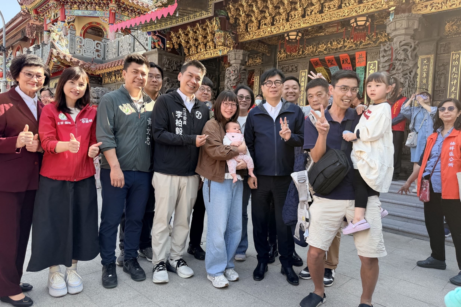 小年夜走春參香行程滿檔,高雄市長陳其邁(15)日上午赴楠梓區右昌元帥府、鳳屏宮、中埔代天府、楠梓東門王爺廟等4間廟宇發送開運小紅包;下午行程足跡遍及橋頭區九甲圍義山宮、燕巢區威靈寺、大社區青雲宮、左營區元帝廟等4間廟宇,共計8間廟宇。