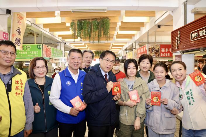 圖1 黃偉哲市長西港市場發放銅板券(圖為臺南市政府提供)