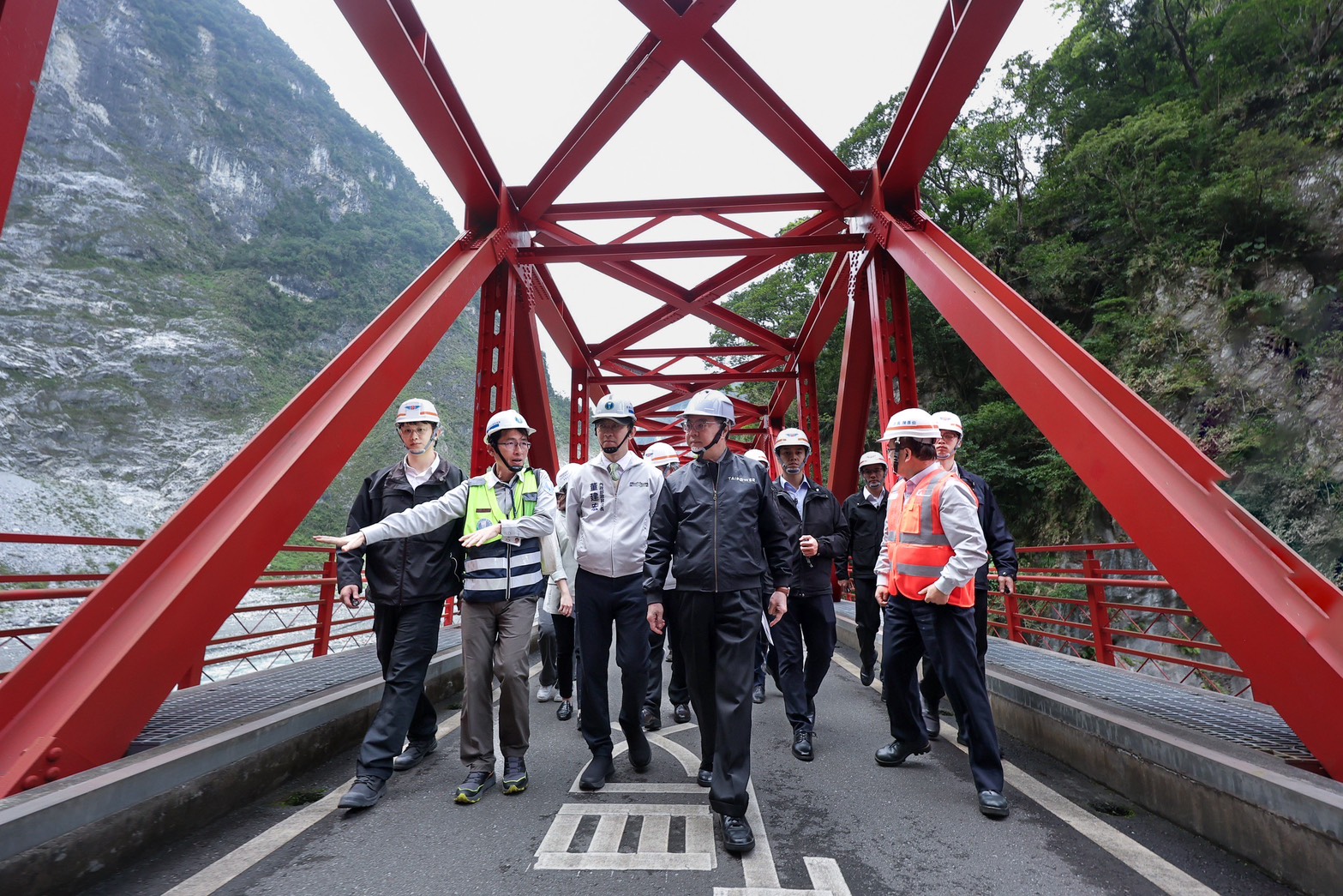 卓院長感謝工程團隊辛勞付出,讓道路得以逐段修復,尤其在太魯閣國家公園內,台8線中橫公路東段沿線有多處災情發生,其中天祥至太魯閣閣口間約17公里路段最為嚴重,因此當時交通部迅速整合地方需求,提出整體修復計畫,行政院亦即時核定,儘速展開沿線危險邊坡搶修及4處明隧道新建等庇護工程,部分邊坡復建工程並已超前進度完成。