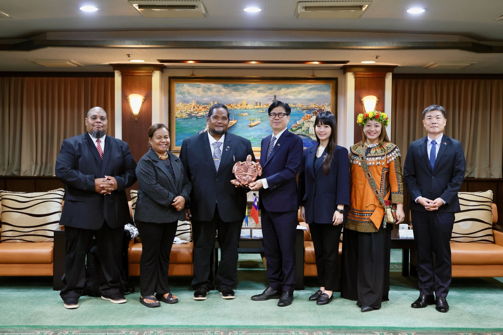 高雄市長陳其邁熱烈歡迎訪團到來,特別感謝帛琉總統惠恕仁在國際場合為台灣發聲,支持台灣參與國際社會,以及對台灣遠洋船隻的協助支持,並指出高雄作為台灣最大港灣城市,長期以來重視與太平洋友邦的連結,尤其帛琉在海洋保育與觀光發展上具備國際能見度,與高雄在港灣治理、海洋永續及觀光行銷等面向具有高度合作可能性。陳其邁強調,高雄期待在既有合作基礎上,持續推動防災治理、環境保育、農業技術、城市韌性與等實質合作。