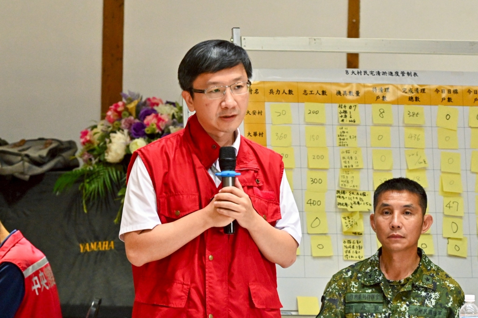 針對花蓮救災進度,季總協調官表示,中央前進協調所自9月24日成立迄今已15天,一開始進入災區時滿地淤土泥濘,現在所有住家及道路淤泥均大致清除完畢,目前僅剩側溝淤泥,以及居民裝修拆除廢棄物待處理,光復鄉7個村的市容景貌已近恢復完成。而目前救災工作重點則在佛祖街以北及東北區域,一直到保安寺部分,並由國軍全部接管,所有機具及工作人員均在此區域支援,希望儘快恢復佛祖街原貌。