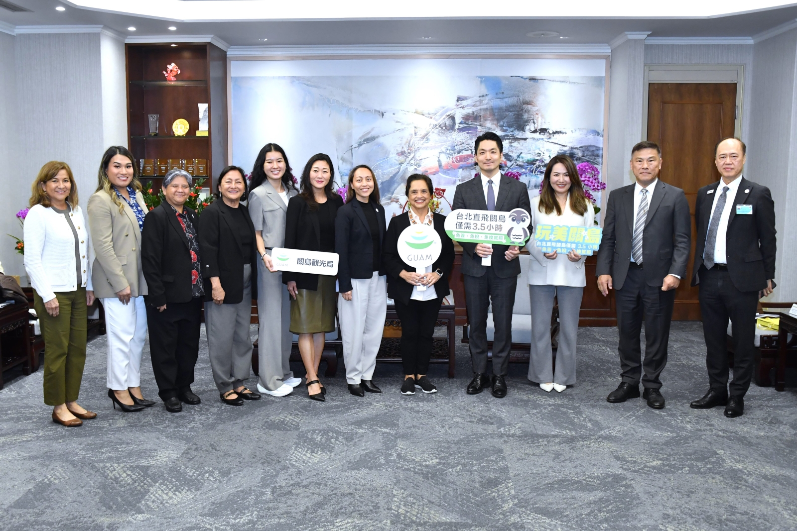 蔣市長指出,關島長年熱情參與臺北市重要城市活動,例如臺北燈節。關島觀光局已連續6年於燈節設置富有當地文化特色的主題燈飾,讓臺北市民透過燈會認識關島文化與魅力,臺北市對此深表感謝。蔣市長也提到,關島擁有壯麗的海洋景觀及悠久的查莫洛文化;去年4月臺北與關島開通直飛航班,飛行時間不到4小時,往來更加便利,也期待有更多關島好朋友來訪臺北,未來在觀光推廣、文化交流及產業發展等方面持續深化合作。