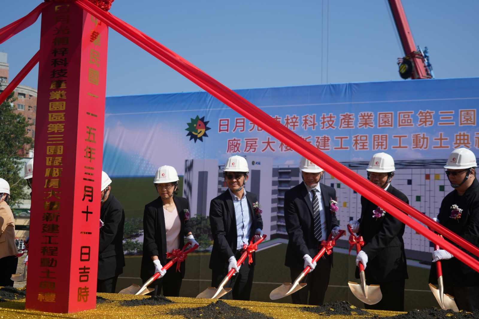 全球半導體封裝測試領導大廠日月光(ASE)(11)日舉行「楠梓科技產業園區第三園區廠房大樓新建工程」動土大典,日月光資深副總經理洪松井、經濟部產業園區管理局副局長劉繼傳、高市府經發局副局長陳怡良出席見證。繼去年10月投資176億元興建K18B新廠後,日月光再度加碼投資178億元,於楠梓第三園區規劃興建「智慧運籌中心」及「先進製程測試大樓」兩棟大樓,預計2026年動工、2028年第二季完工,完工後可創造約1,470個就業機會,並進一步提升高雄在全球半導體及AI產業鏈的競爭地位。