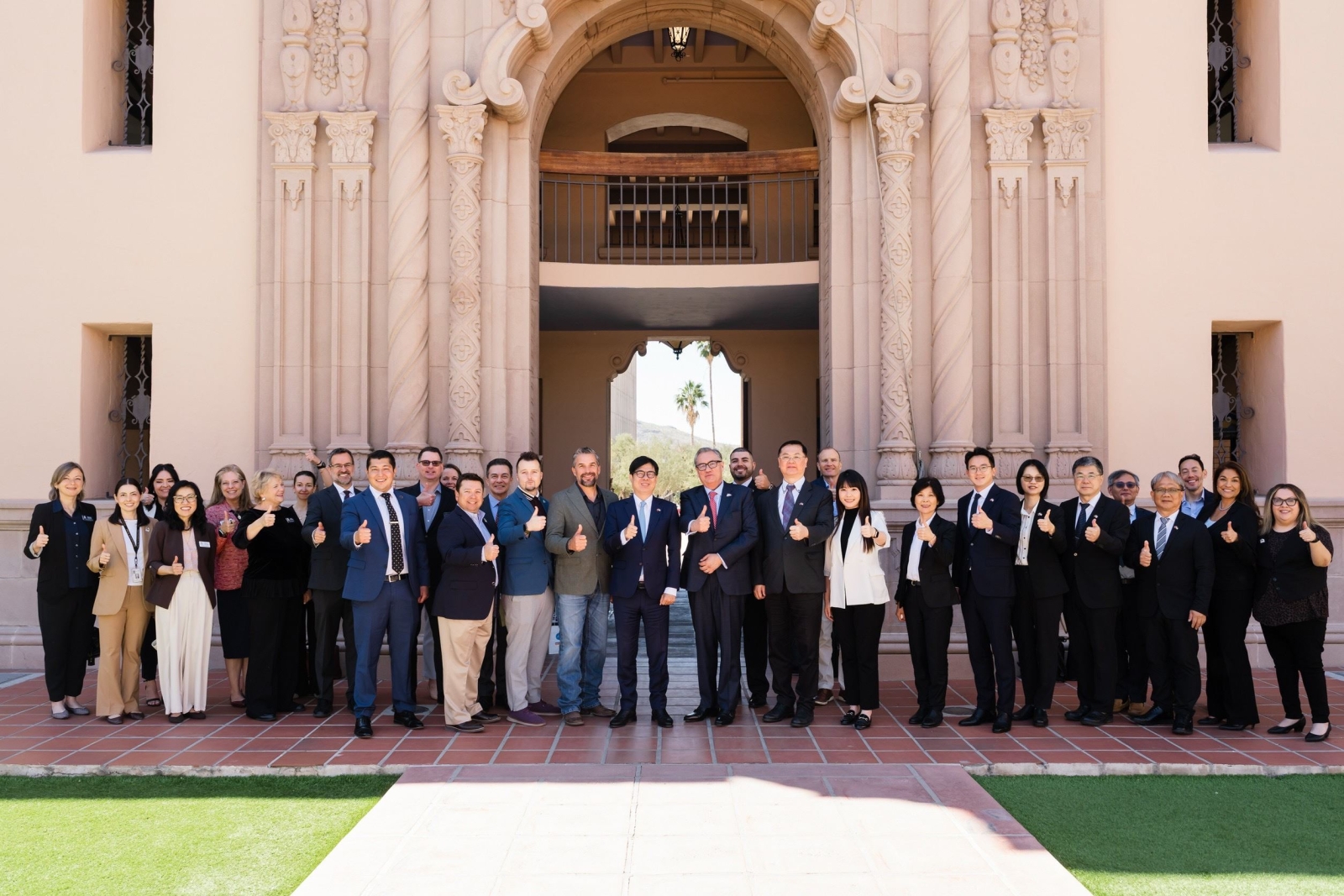 亞利桑那南部經貿核心全面對接高雄,產官學陣容堅強。本次六方拜會由亞利桑那州商務廳國際貿易投資執行副總裁費爾南多·加西亞(Fernando Garcia)統籌,皮馬郡府展現高度重視,由監事會主席珍妮佛·艾倫(Jennifer Allen)與會;土桑市作為全美著名的「光學之谷」(Optics Valley),市政經理蒂莫西·索謬爾(Timothy Thomure)亦率領經濟代表與會。學界方面,由亞利桑那大學(University of Arizona, UofA)研究與合作事務資深副校長托馬斯·迪亞茲·德·拉·魯比亞(Tomás Díaz de la Rubia)領軍,匯聚理學院、光學科學學院及國際事務處等多位院長,顯見美方對高雄市政府訪團的重視,以及發展合作的積極期待。