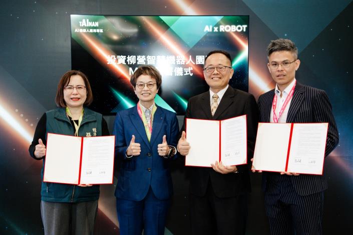 圖1 簽署「進駐臺南柳科合作備忘錄」,鏈結產官學研界資源共同推動智慧機器人產業聚落(圖為臺南市政府提供)
