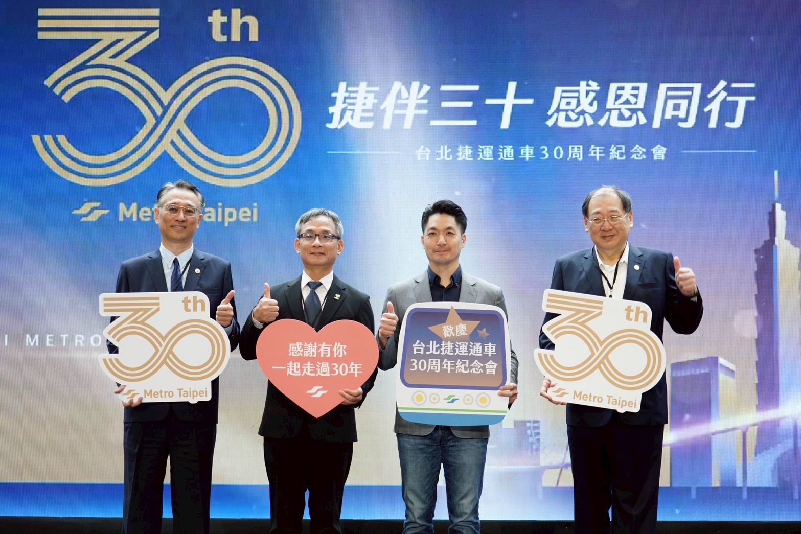 隨後,蔣萬安緊接著出席臺北捷運通車30週年紀念會,見證臺北捷運通車30週年的重要時刻。他回溯30年前的今日,臺北市第一條捷運木柵線順利通車,從此成為市民日常生活的一部分,並獲得高度肯定。臺北捷運不僅是城市交通的命脈,更是承載市民共同記憶與城市發展的重要基石。他期許在既有的堅實基礎上,再創下一個30年的輝煌。