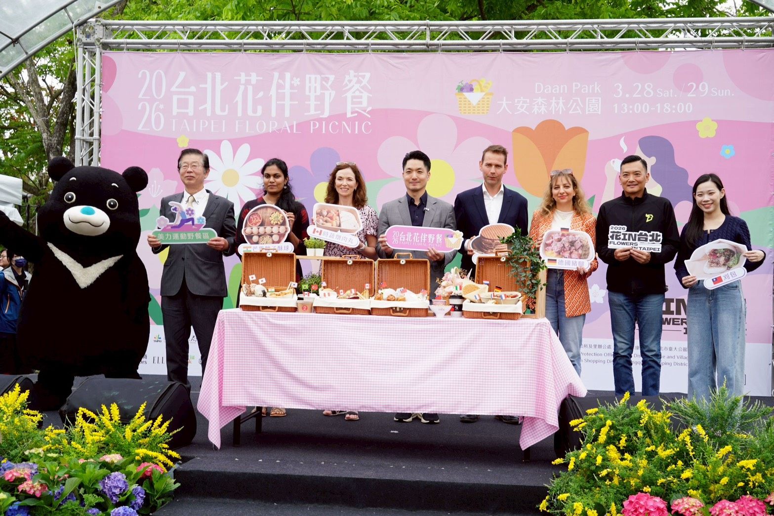 臺北市花伴野餐活動於(28)日於大安森林公園盛大開幕,臺北市長蔣萬安為這場年度盛會揭開序幕。蔣萬安表示,今年活動邁入第三屆,特別擴大為週末兩天,誠摯邀請市民朋友攜家帶眷、帶著毛孩一同前來,在繽紛花海中享受美好的春日時光。
