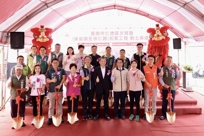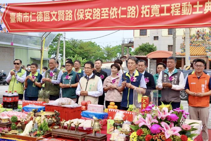 為提升仁德地區交通量能,台南市政府推動「仁德區文賢路拓寬工程(保安路至依仁路)」,台南市長黃偉哲今(7)日主持動土典禮,祈求工程平安順利,並期許工務團隊如質如期完工。黃偉哲表示,文賢路拓寬工程全長約2.87公里,總經費高達12.65億元,由中央補助5.88億元,市府自籌款為6.77億元,顯見地方對此重大建設的決心。他特別感謝立委及在地議員的支持,透過中央與地方合作,才能順利推動這條串連十三甲、保安、德南及中洲地區的南北向交通大動脈。