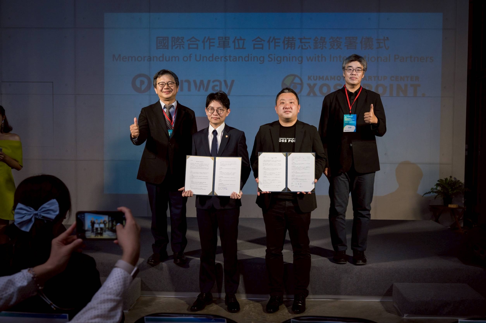 今日活動並由國發會與高雄市政府共同見證高雄青創基地 PINWAY 與日本熊本市 XOSS POINT.簽署MOU,詹副主委表示,臺日新創交流熱絡,臺灣新創團隊近年積極參與日本東京等地之創新創業活動,國發會也將透過與地方政府、產業界及國際夥伴共同努力,打造更友善國際優秀人才環境,吸引更多全球人才在臺灣落地生根,帶動創新創業發展。