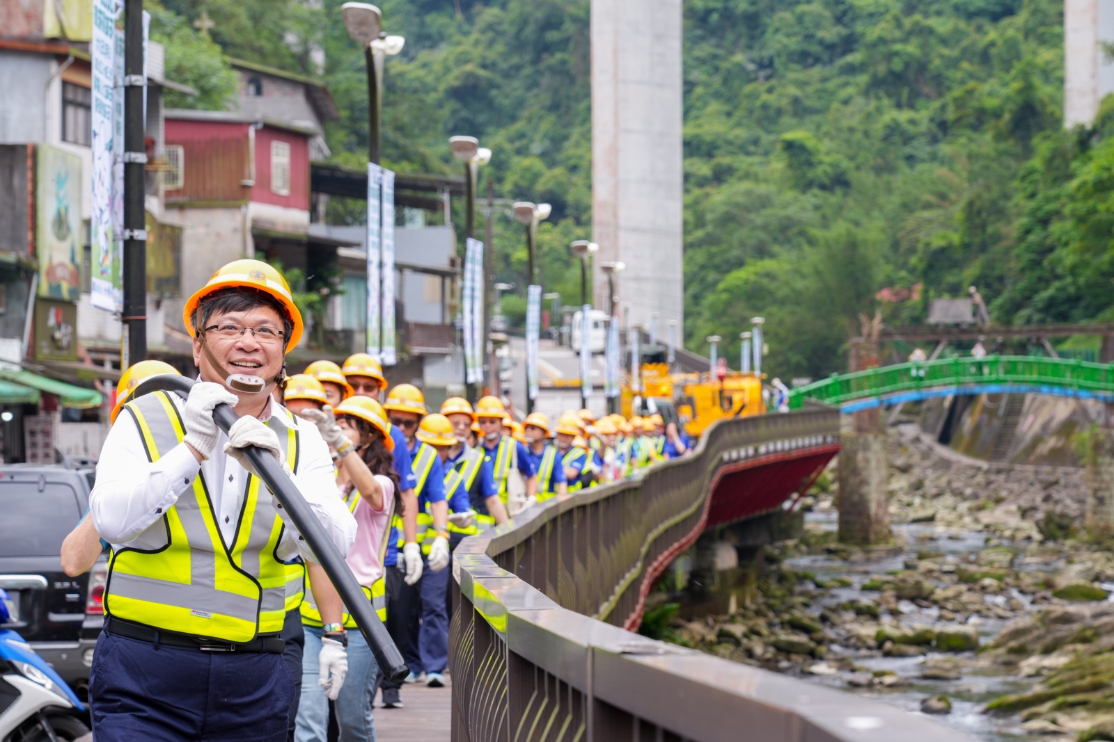 適逢台電80周年,台電將日常生活中熟悉的電桿轉化為綠道指引標誌,今日也於石碇國小舉辦「有光就有路!台電80周年職人體驗」活動,由台電董事長曾文生、千里步道協會執行長周聖心、新北市經濟發展局局長盛筱蓉、台灣電力與能源工程協會理事長劉文雄等貴賓共襄盛舉,與現場民眾一同體驗扛起長達60公尺、重約250公斤的電纜,親身感受台電人負重前行的辛勞;並實地走訪淡蘭古道,體會「讓電桿指路」的趣味與踏實感。