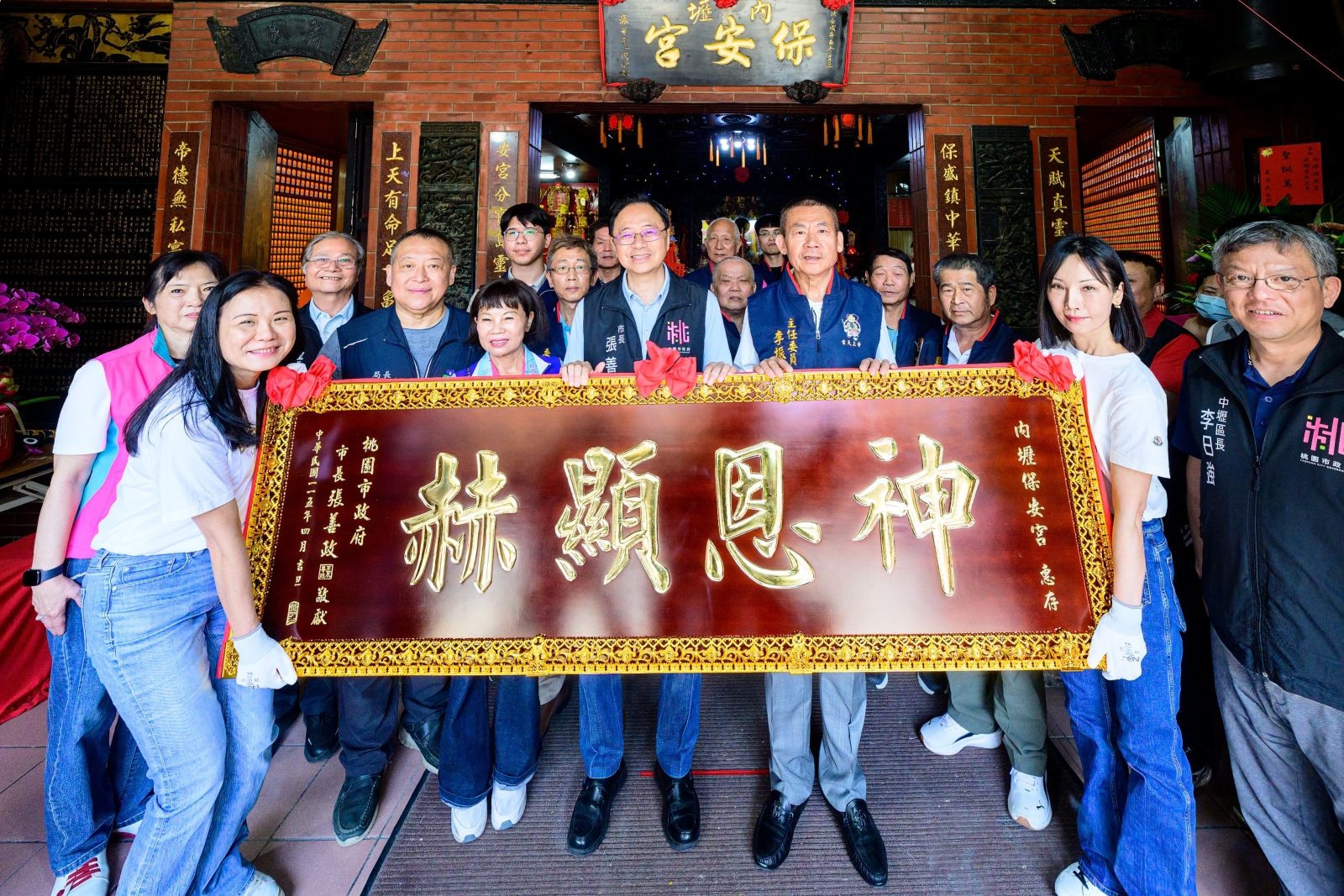桃園市長張善政昨(19)日上午前往中壢區,出席「中壢玄天宮、內壢保安宮玄天上帝聖誕參香暨贈匾」活動。張市長表示,玄天上帝聖誕為地方重要宗教盛事,長年凝聚信眾向心力,市府特別致贈匾額表達敬意與感謝。