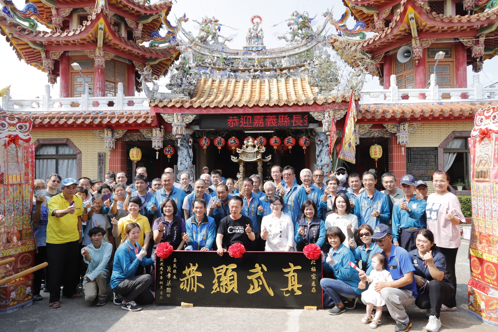 嘉義縣長翁章梁19日出席太保市北極宮玄天上帝聖誕暨贈匾儀式,入廟團拜並贈匾題字「真武顯赫」,農曆三月初三玄天上帝聖誕,翁章梁說這塊匾額能選在今天放在宮內,是他很大的福氣。
