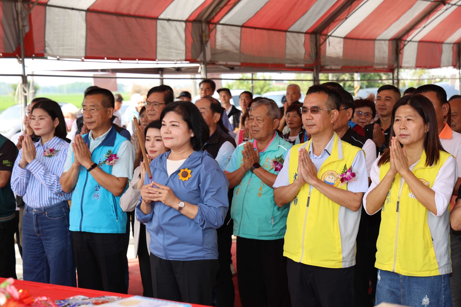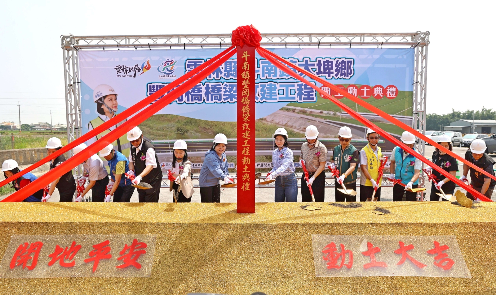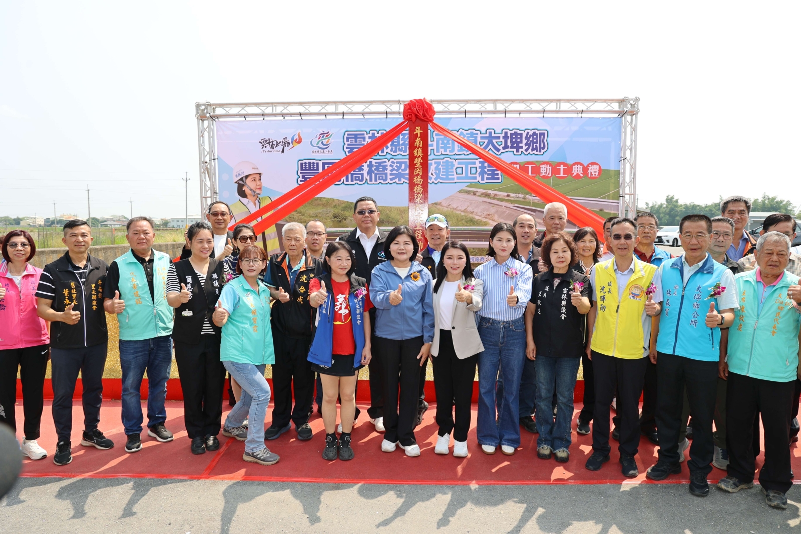 雲林縣長張麗善昨(4/21)與副縣長陳璧君、縣政總顧問張清良、交通工務局汪令堯局長及工程團隊,偕同經濟部水利署第五河川分署王銘熙秘書、立法院張嘉郡委員、劉建國委員秘書高明達,縣議員簡慈坊、王秋足議員、顏忠義議員、斗南鎮長沈暉勛、大埤鄉長林森寳、大埤鄉民代表會主席陳秋慶、斗南鎮民代表會主席陳大華、雲林縣工商發展投資策進會總幹事張耀文、大埤鄉農會總幹事吳昌遠,兩鄉鎮代表及里長、鄉親等出席開工動土典禮,正式宣佈動工。