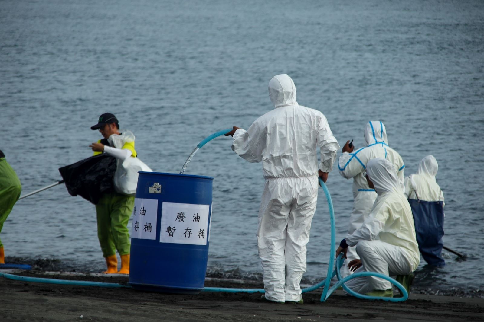 此次演練模擬溺水事故與複合型海洋污染事件,並結合海巡署無人機區隊到場投放魚雷浮標救生,展現突發事件應對及跨領域協作的能量,進一步強化南部區域聯防運作機制。除傳統油污處置外,亦首次納入化學品外洩情境,本次演練情境由於油污易滲入礁岩及人工構造物縫隙形成油泥或硬塊,現場採高壓沖洗結合吸油棉索圍堵,可迅速去除附著油污,應變人員再將資材集中回收妥善處理,完整展現岸際污染防治流程。