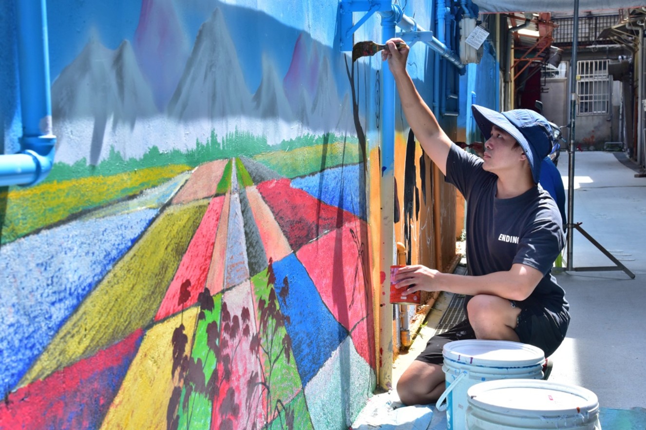 藝術家於後巷彩繪牆面中 圖1