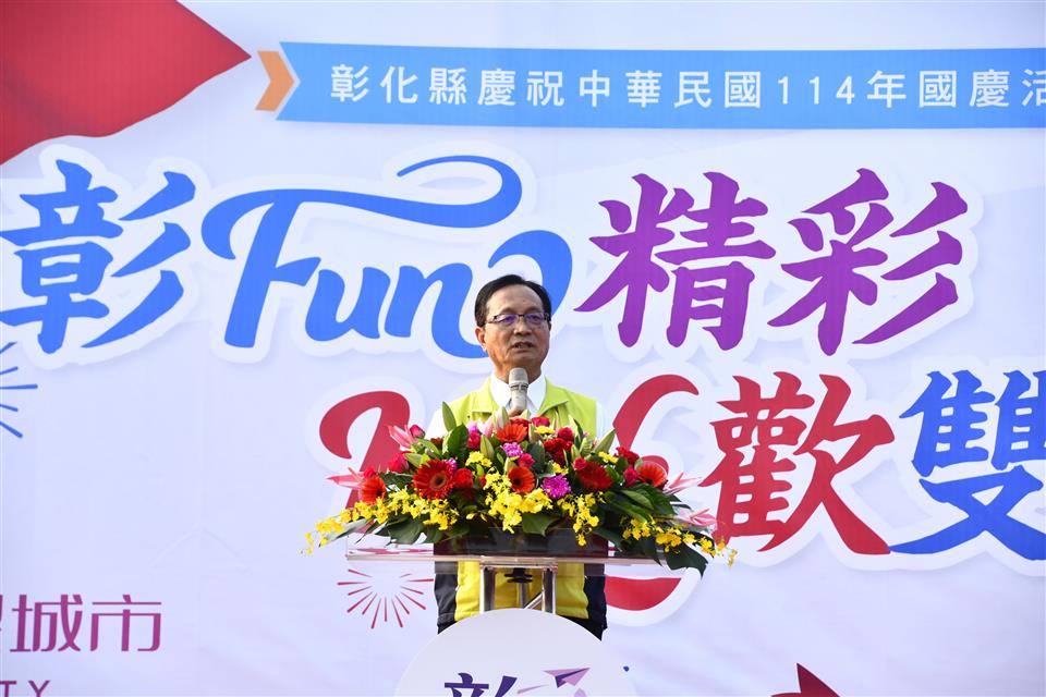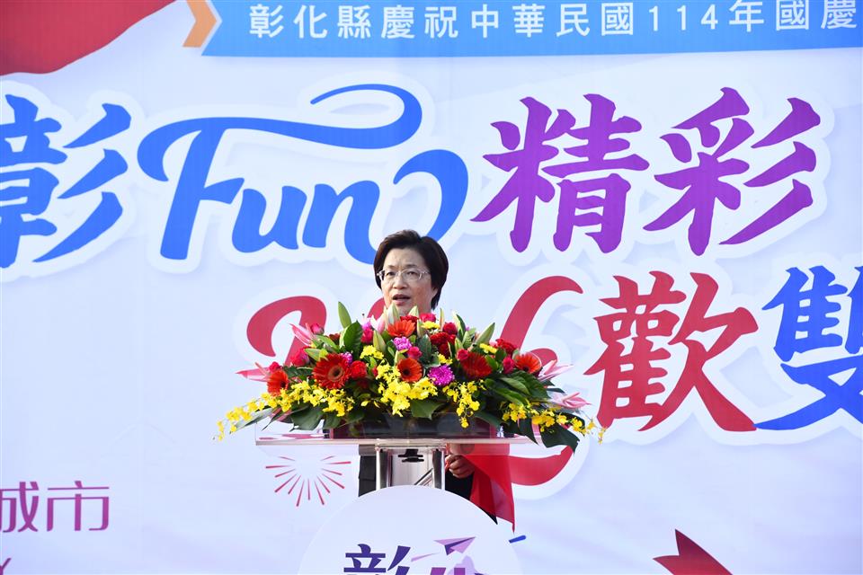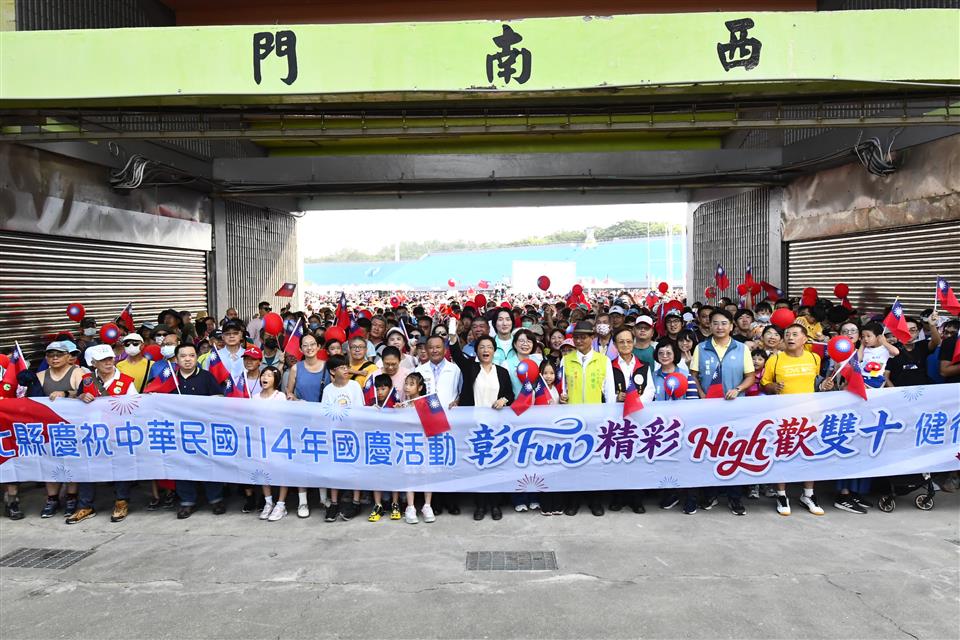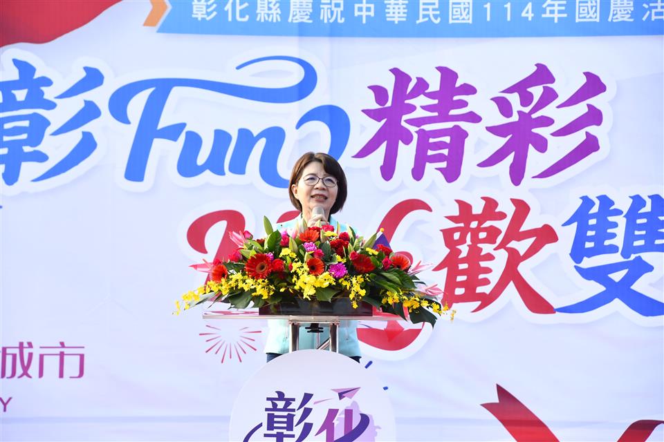 彰Fun精彩・High歡雙十,歡慶中華民國114歲生日,彰化縣政府10月10日上午7時於彰化縣立體育場盛大舉辦「彰Fun精彩・High歡雙十」健行活動暨公益園遊會。縣長王惠美與會參加升旗典禮,現場吸引超過四千人一同參與,展現大家對國慶的熱情與期待,一起為彰化的未來加油打氣!王縣長表示,祝福中華民國生日快樂!感謝社會處及救國團用心規劃一系列活動,活動包括有公益市集、親子體驗活動區,還有闖關集點以及健行活動。9月開放線上報名後,3千名額很快就額滿,現場總參與人數突破4千人,「2025台灣設計展」同時也於今天正式開展到10月26日,為期17天,邀請鄉親帶著親朋好友一起踏上「彰化行」的旅程。