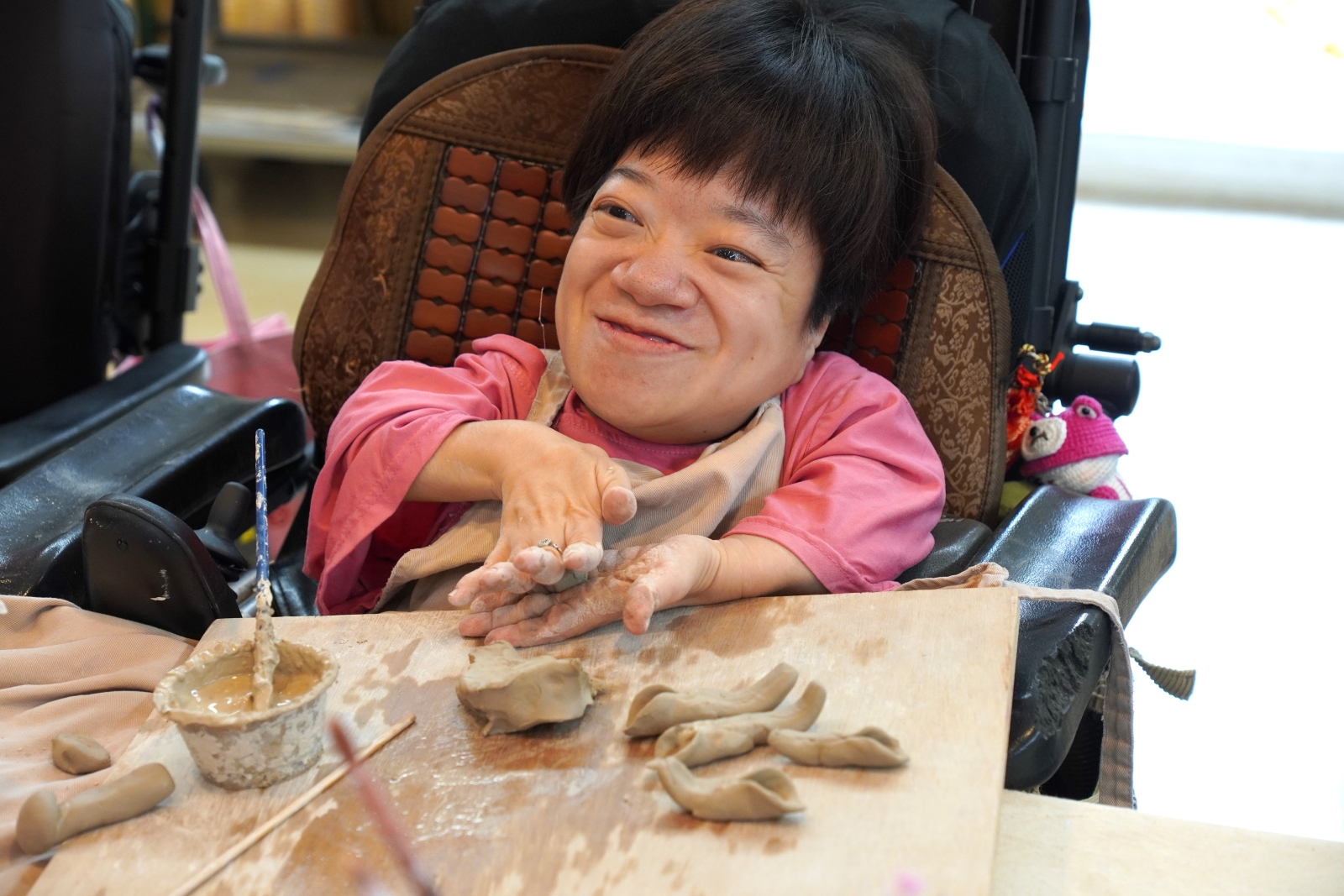 罹患罕見疾病的院生「小雪」開心捏塑著陶土 圖1