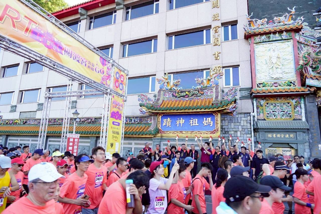 蔣萬安市長感謝關渡宮長期以來對社會公益的投入,並祝福活動圓滿成功,所有參與路跑的民眾都能跑出佳績。鳴槍起跑後,蔣萬安也特別前往大殿參拜,向「干豆媽」祈求國泰民安,風調雨順,合境平安!