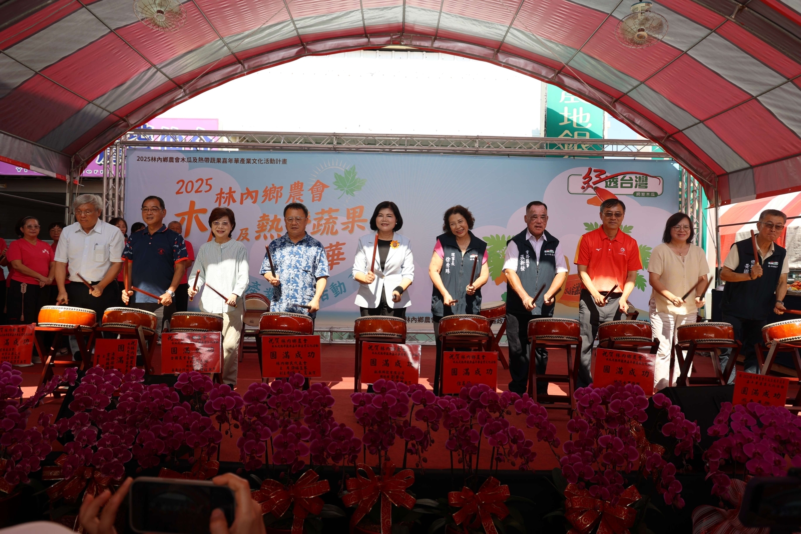 縣長張麗善18日上午受邀出席「2025 林內鄉農會木瓜及熱帶蔬果嘉年華產業文化活動」,偕同林內鄉農會理事長徐秀珠、常務監事張新發、總幹事黃國洲、縣府農業處長魏勝德等共同推廣行銷林內鄉優質農產品,邀請全國鄉親好朋友,選購雲林在地、當季、優質的農產品,不僅健康安全、風味極佳,也能支持農民、減少碳足跡,為環境永續盡一份心力。