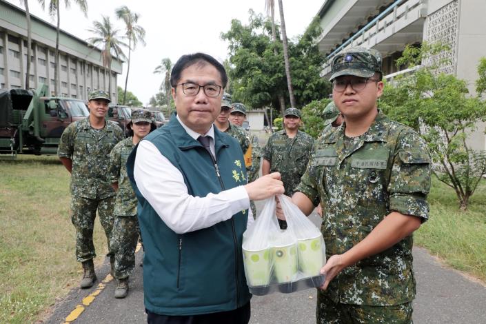 台南市長黃偉哲今(20)日至陸軍砲兵訓練指揮部永康校區,關心部隊搬遷作業情形,並送上飲料慰勉官兵工作辛勞,肯定砲訓部在國防建設與地方服務上展現的堅定精神與奉獻態度。黃偉哲表示,國軍長年守護家園,協助地方防災、救援與公益工作,即使在搬遷期間仍能維持高效率的任務推動,充分展現「紀律、專業、奉獻」的優良傳統。