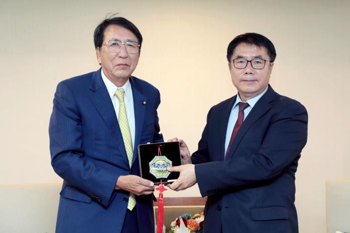 黃偉哲市長贈送劍獅給藤田政樹會長(左) 圖3