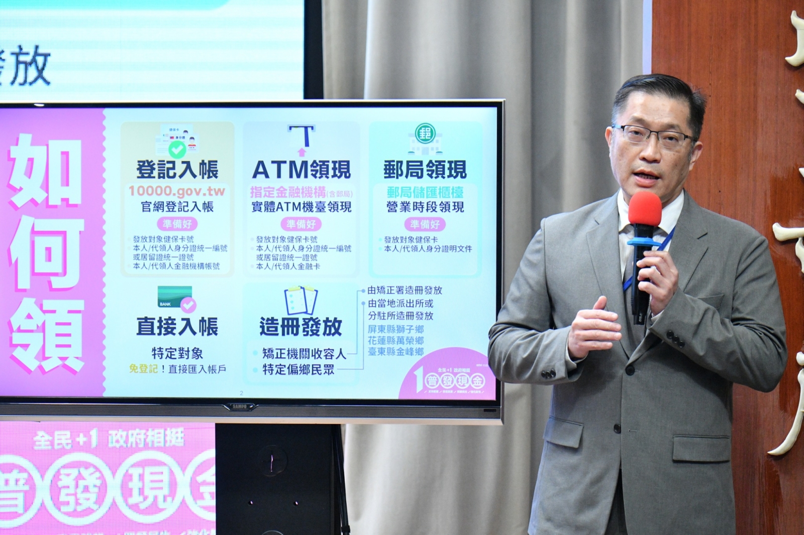 針對本次普發現金發放資格及領取方式,財政部表示,本次普發現金的發放資格包括國內現有戶籍國民、各級政府機關因公派駐國外人員及其具我國國籍眷屬、大陸地區人民與港澳居民及外國人為我國國民之配偶且取得居留許可者、取得永久居留許可之外國人及115年4月1日至4月30日國內出生之國民等;領取方式採「登記入帳」、「ATM領現」、「郵局領現」、「直接入帳」及「造冊發放」5種方式。