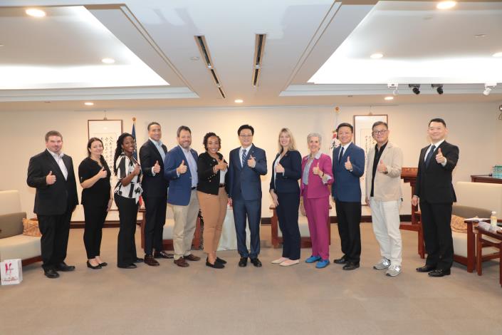 美國中大西洋州議會領袖訪台團一行9人於昨(23)日由德拉瓦州眾議長麥娜布朗女士(Melissa Minor-Brown)率領4州議會領袖共同來訪台南,黃偉哲市長委請徐健麟副祕書長接見,訪賓除表達選擇來訪台南主因為對歷史古都文化深感興趣,會中也就地方制度、代表性古蹟與棒球等議題交流。