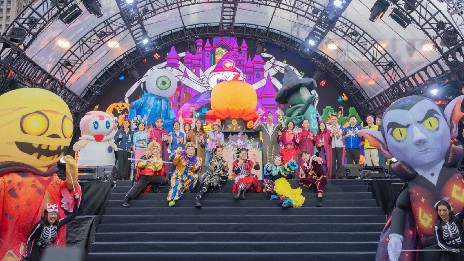 觀旅局表示,今年萬聖城以「魔幻蜘蛛王」為主題守護者,結合魔幻光影秀《蛛影幻境》與原創夜光踩街劇《魔蛛古堡守衛隊》,以光影科技與大型發光巨偶打造沉浸式體驗,為市民帶來前所未有的視覺饗宴。明日開城演唱會「古堡狂歡・金曲派對」邀請麋先生Mixer、U:NUS、守夜人、Ponay卜耐及SONNIE桑尼等歌手熱力開唱;26日有「公益彩嘉年華」、「萬聖變裝競賽」與「魔幻街舞派對」;10月27日至31日登場的「桃園星光大道」,以及11月1日至2日「親子魔幻歡樂城」與「變裝電音派對」,由YOYO家族、拷秋勤、八十八顆芭樂籽及多組DJ輪番登場,嗨翻全場。