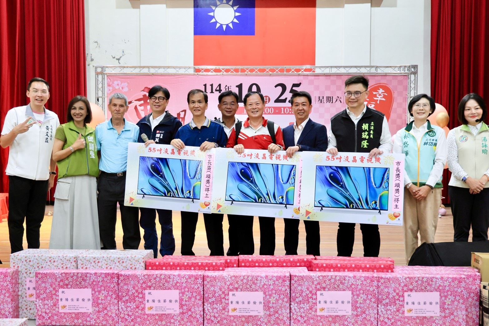 陳其邁帶來電視機摸彩好禮,並加碼紅包抽獎,與長輩同樂,氣氛歡喜熱絡。圖1